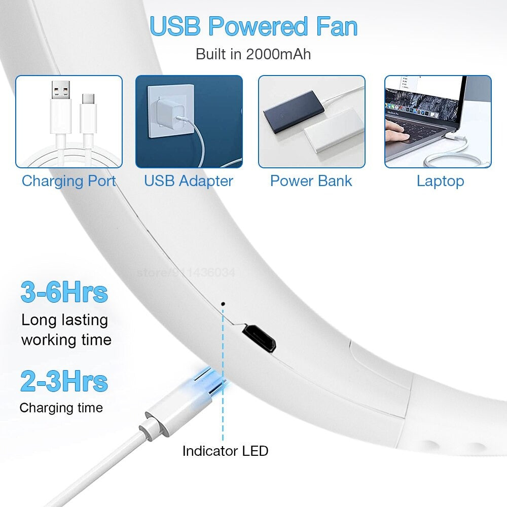 - Hands-free Design & Fashionable: Hand-free neck fan was designed as a headphone to free your hands anywhere; The fashion style makes you look cool and you can take it anywhere in hot weather.